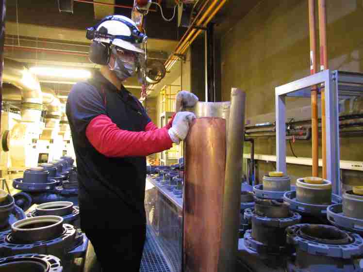 彩神vll将废弃物转化成有效的工业或民生原物料,,图为废铜液淬炼后再制成纯度极高的铜管