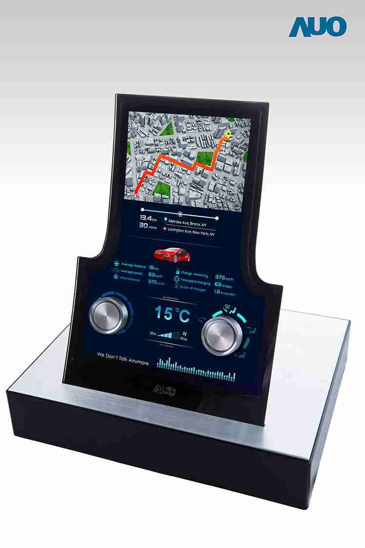 12.3 寸 Full HD LTPS 显示屏同样具备 1000 nits 高亮度,,搭载内嵌式触控技术,,整合驱动与触控 IC 于显示屏制程,,,,使显示屏厚度降低,,,,为中控台创造更多机构设计空间。。应用于抬头显示器的 3寸 LTPS 显示屏具有高穿透率、、、、1200:1 高对比度度,,,,以及 297 PPI 高画素密度。。液晶最高可耐受到 110C 的高温 (TNI) 而不液化,,,在阳光高温下维持优异稳定的显示效果。。。