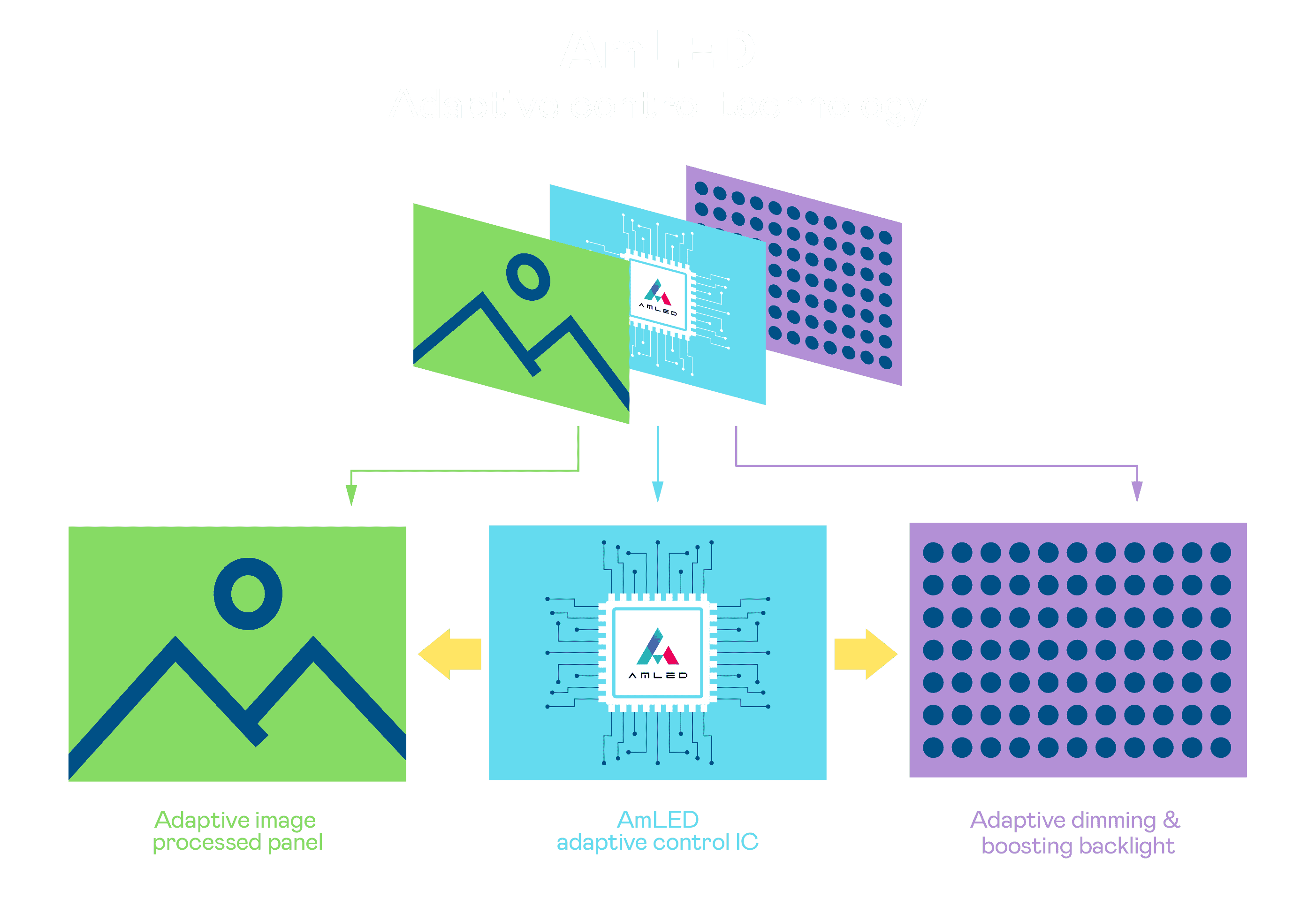 AmLED 具备更省电与低蓝光特性。。。。与一般的 LED 背光显示技术相比,,,,由于 AmLED 常时处于局部调光状态,,其功耗仅有前者的 50% 左右,,,同时 AmLED 还具备低蓝光特性,,满足长时间使用的护眼需求。。。。